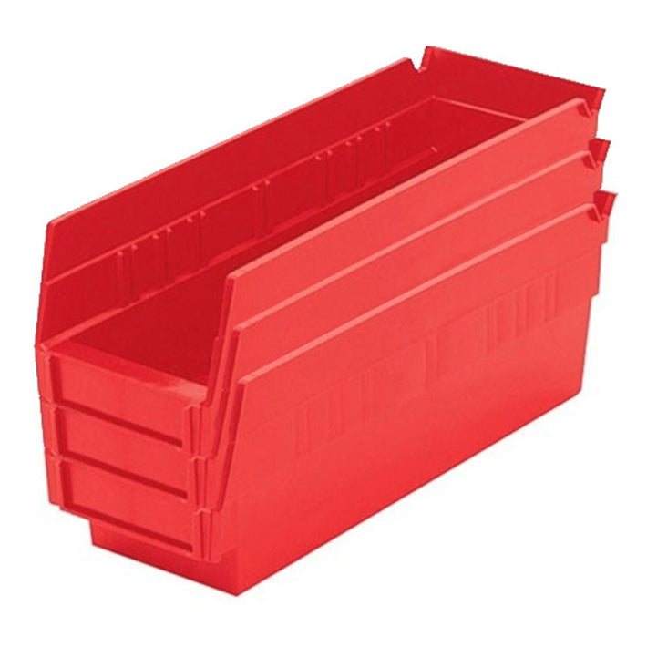 Nesting shelf bins are perfect for storing and organizing small parts and components. The low-profile design of these bins compliments the open hopper front, creating an easy-to-access storage system that is both lightweight and durable. These plastic storage bins are waterproof and chemical resistant, making them an option for use in industrial environments. When not in use, these bins can be nested within each other, allowing you to free up space on your shelves.