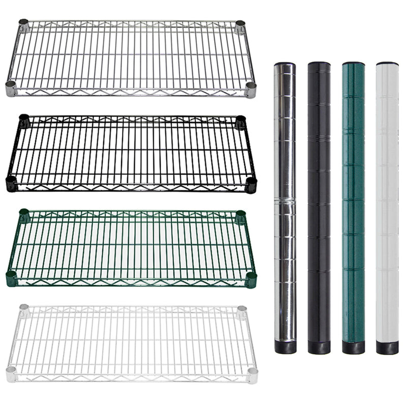 Our wire shelves and wire racking are versatile enough to be used in commercial, industrial, and residential settings. Each of our heavy-duty wire rack / shelving units can support up to eight hundred pounds of items per shelf. And with the modular, expandable design, you can use add-on wire shelving or wire shelving accessories to enhance the wire racks you currently have without the need for costly renovation or replacement.
