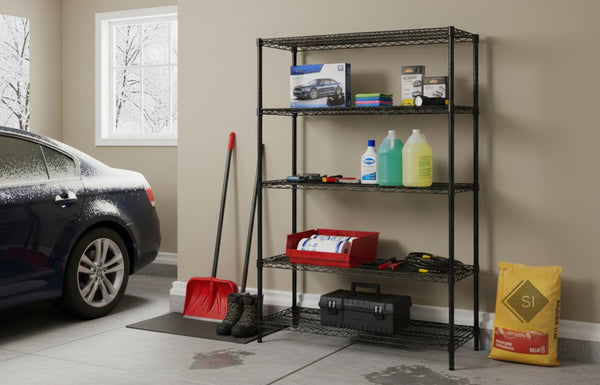 The gold standard of organization is met with the combination of heavy-duty AkroBins and always-reliable wire shelving. This sturdy storage system keeps items tucked away, separated, and easy to grab.